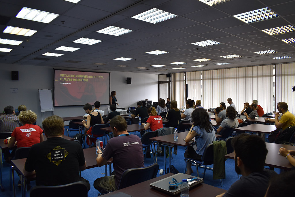 WordCamp workshop taking place with attendees watching the speaker